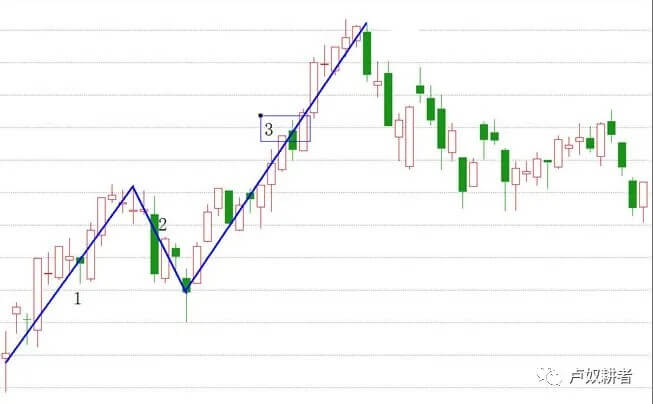 在谈论面对回调的话题前我们不得不先谈谈如何正确的识别回调。卢奴耕者很懒,基本上文章不喜欢配图,但是聊回调就不得不配个图,下图折腾了半天,只是为了说明问题,读者不要过分解读。下图后期还会提到几次,请读者记住这是图一,以及图中标注的1、2、3。